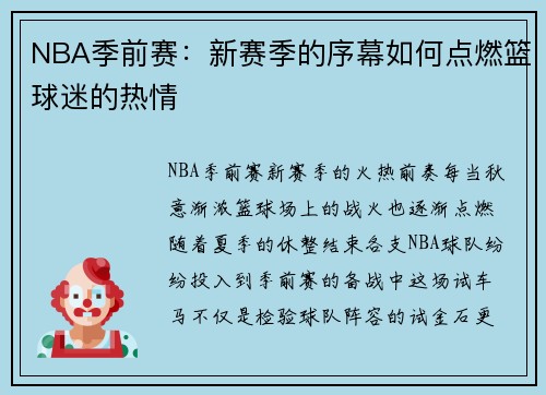 NBA季前赛:新赛季的序幕如何点燃篮球迷的热情